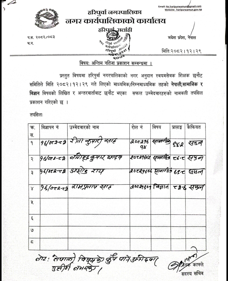» अन्तिम नतिजा प्रकाशन सम्बन्धमा