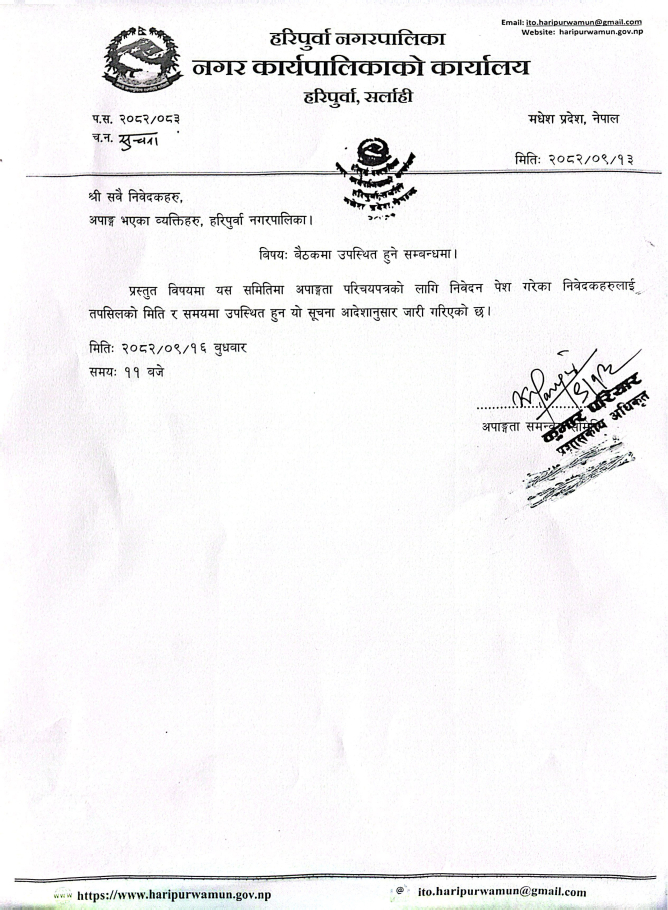 अपाङ्गताको लागि निवेदकहरु बैठकमा उपस्थित हुने बारे सूचना