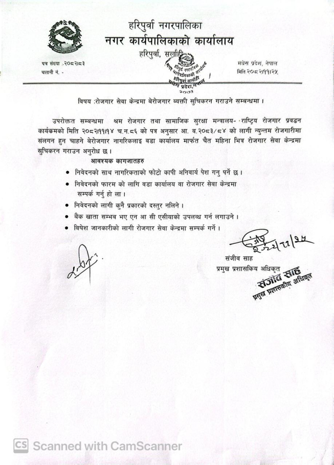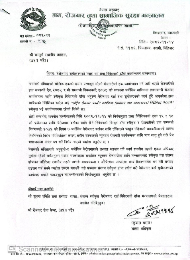 » रोजगार सेवा केन्द्रमा बेरोजगार व्यक्ति सूचिकरण गराउने सम्बन्धमा